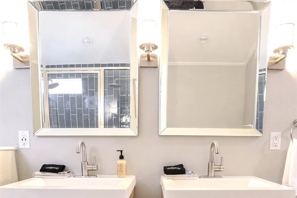 Each bathroom is stocked with toiletries and feature a West Texas favorite, Tecolote Handmade Soaps.