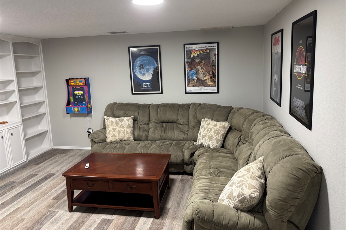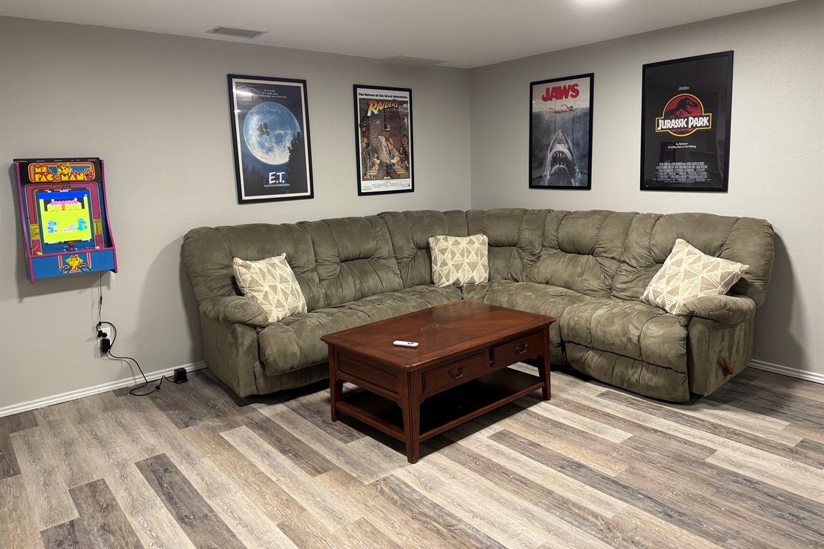 The heart of the home is the fully stocked, luxury kitchen—complete with a large island, electric oven, Keurig Duo, blender, crockpot, mixer, griddle, and all the essentials for hosting. Enjoy meals together at spacious dining areas, then relax by the cozy living room fireplace or head to the basement for movies and games.