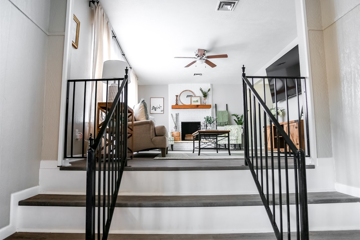 This beautiful split level home has a bedroom with a king bed, 1/2 bath, sitting area, and a laundry room on the ground floor. The living room, kitchen, and dinning room are half a flight of stairs up and on the second floor. Up another half flight of stairs you will find 4 bedrooms, including the master, along with 2 full bathrooms.